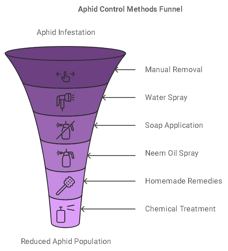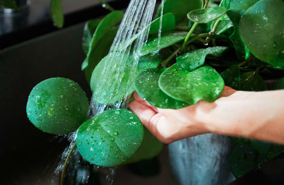 A strong jet of water blows them off from the plant. If the leaves of the plant are delicate and cannot withstand spraying, you can immerse the whole plant in water to dislodge the aphids. Hold the pot upside down and dip the foliage part of the plant into a bucket with clean room-temperature water. Indoor plant rinsed under running water to remove aphids
