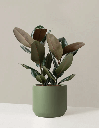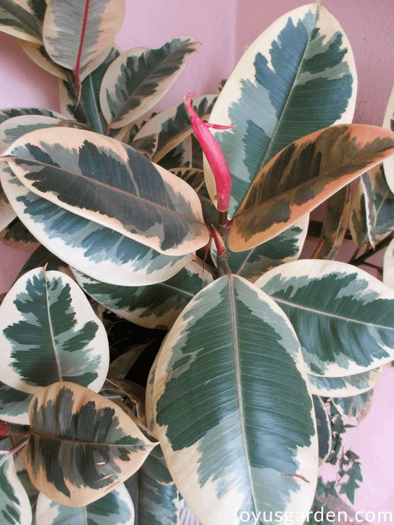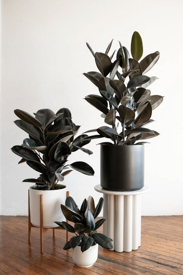 Rubber plants are usually cultivated in their indigenous setting, where they may attain heights of between 50-100 feet, but indoor rubber trees differ greatly while still maintaining almost identical sizes within captivity: For example, it is possible for dwarf rubber plant varieties to only reach two feet tall, whereas other common rubber plant species can achieve heights of about ten feet under appropriate growth conditions. The leaves of the rubber tree can be glossy green, reddish-brown, or pinkish with greenish and creamy colorations, and the size of a rubber tree's leaves can be from a few inches long to a foot and even more.