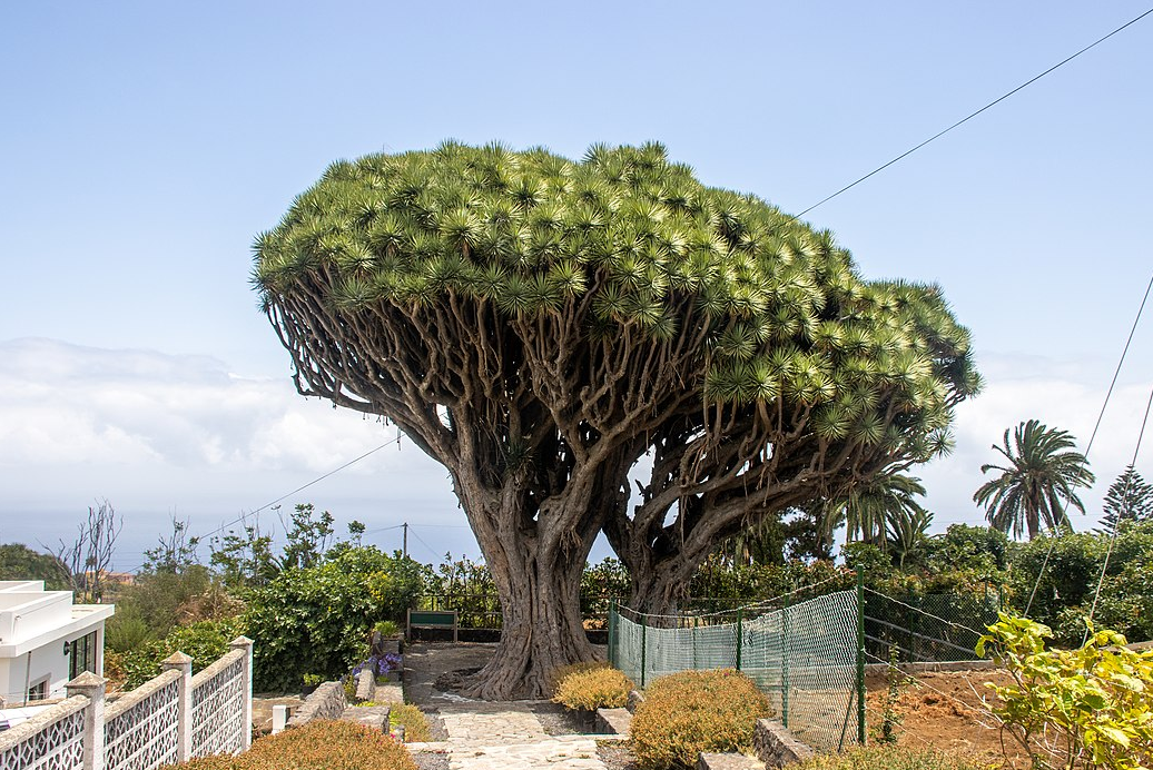 This species is iconic and distinct because of its unnatural appearance and the red resin extracted from the tree, often called "dragon's blood." The dragon blood tree is tall, growing up to 15 meters (50 feet), and evergreen with an umbrella-shaped canopy in the middle, but supported by a thicker central trunk plus multiple branches.Β Β