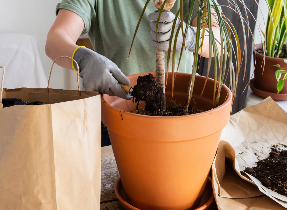 Dragon trees should be repotted every year. D. draco likes to be a bit pot-bound, but the plant shouldn't become so top-heavy that it could tip over smaller containers. Use a very porous and well-draining potting mix, and make certain the pot has several good drainage holes. Wet roots kill this plant. Most people donβt know how to repot a plant so make sure you select the right time and the right pot for repotting.