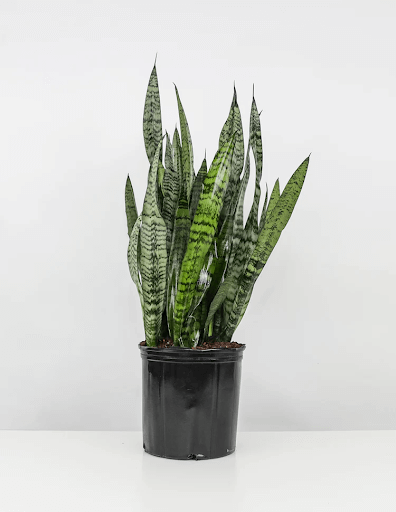 Sansevieria zeylanica is also known as the snake plant or mother-in-law's tongue. It is a striking and easy-to-maintain houseplant. Its large size and unique dark green shades make it a staple in contemporary decor. For decades, snake plants have been beloved for their air-purifying properties, helping to filter indoor air by absorbing toxins and releasing oxygen. They thrive in medium to bright indirect light; and are perfect for low-light areas with space constraints. Snake plants are ideal for those seeking a low-maintenance yet impactful addition to their home or office. They enhance the aesthetic appeal of a space but also contribute to improved mood, productivity, and overall well-being, making them a valuable addition to any indoor environment.
