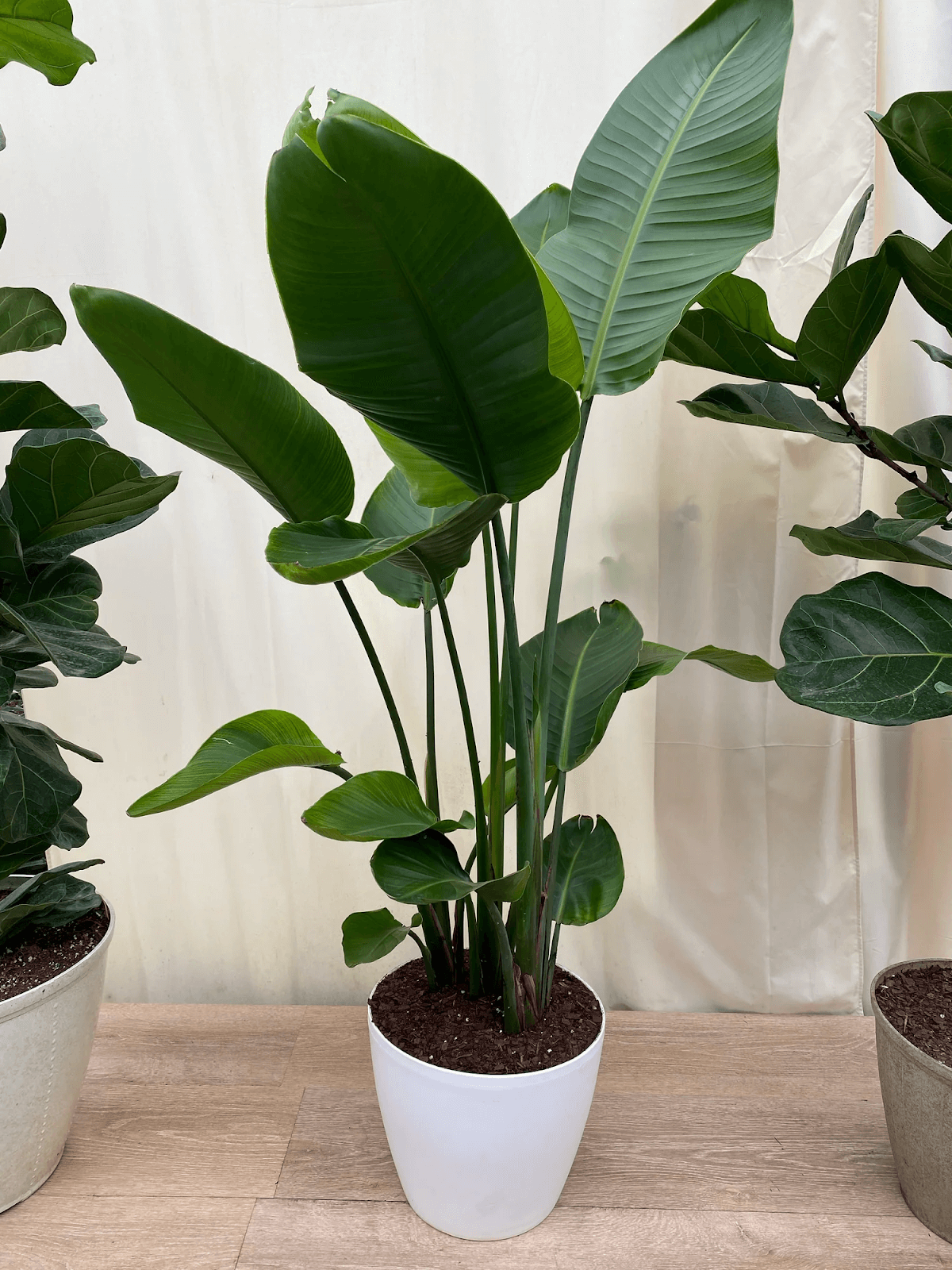 Ficus lyrata Bambino Little Gem, commonly known as the fiddle-leaf fig, is renowned for its suitability as an indoor plant. It can grow up to 25 feet high when planted outdoors. It has rounder, smaller leaves that maintain a rich green hue. As one of the oldest houseplants globally, Ficus has earned its popularity due to its resilience in adapting to various light conditions and minimal care requirements. Indoors, Ficus trees thrive with ample light, protection from cold temperatures and drafts, and lightly to moderately moist soil. This elegant tree not only adds grace to your indoor greenery collection but also offers ease of maintenance. This stunning plant adds a touch of classiness to any room and flourishes in bright, indirect light.