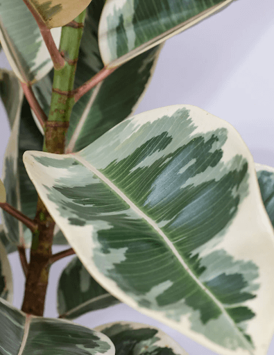Ficus Elastica Tineke Variegated is also known as the Rubber Tree or Indian Rubber Tree. It is a popular indoor plant cherished for its ornamental features. This variety stands out due to its colorful foliage, which showcases shades of pink, cream, and green all on the same leaf, creating a beautiful blend. The leaves have a unique fuzzy texture, adding to their appeal. Ficus Tineke grows well indoors and can adapt to different indoor climates. It prefers bright, indirect light to grow. Avoid exposing it to cold drafts during winter, as it prefers a stable temperature. Keep the soil lightly to moderately moist, allowing it to dry slightly between waterings. Adding this gorgeous tree to your houseplant collection can bring a touch of grace and classiness to your home.