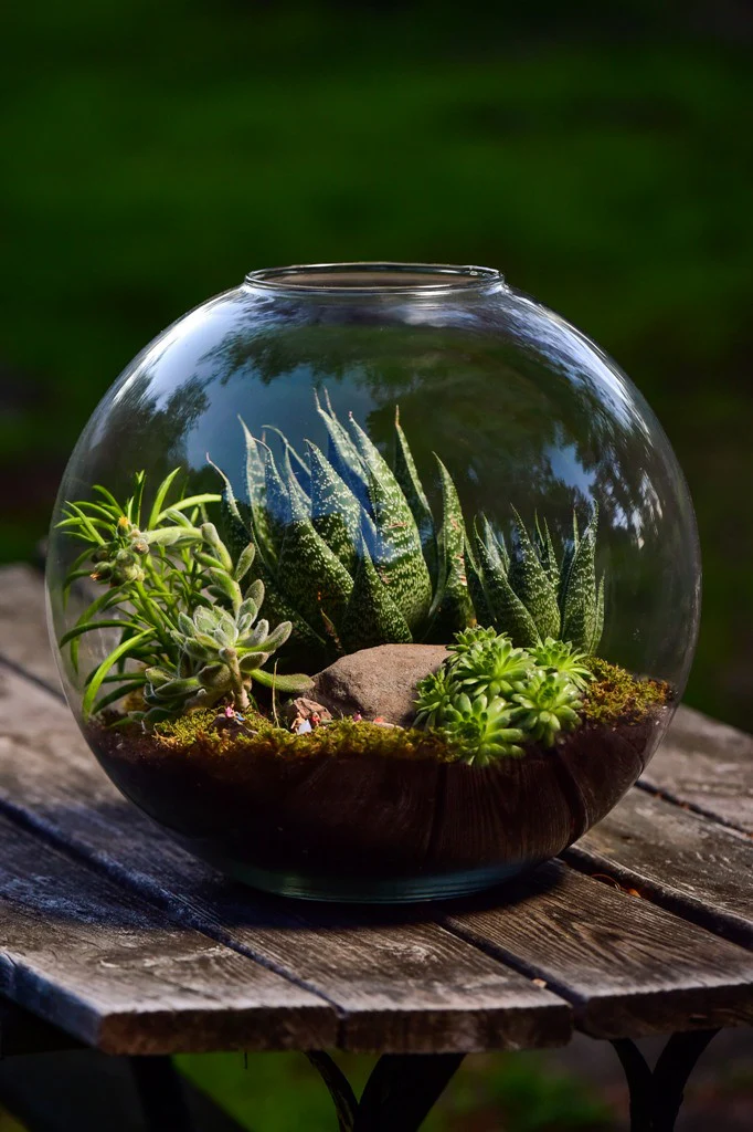 A terrarium is an enclosed environment that resembles a miniature indoor garden. By releasing moisture, the plants and soil cycle water in a terrarium. This vapor condenses on the walls and flows back into the ground, providing hydration for the plants. Sealed terrariums are self-sufficient and need minimal attention as they are prearranged to sustain themselves. For example, small sealed containers with indoor gardens are inside them called terrariums. All plants and soils in their interior let go of water vapor. So they go through a process of recycling water. Eventually, these evaporated vapors collect on the inner sideboards of glass models resulting in a drip down towards the soil. As all nutrients come from within them, such structures demand nearly no maintenance if kept closed.