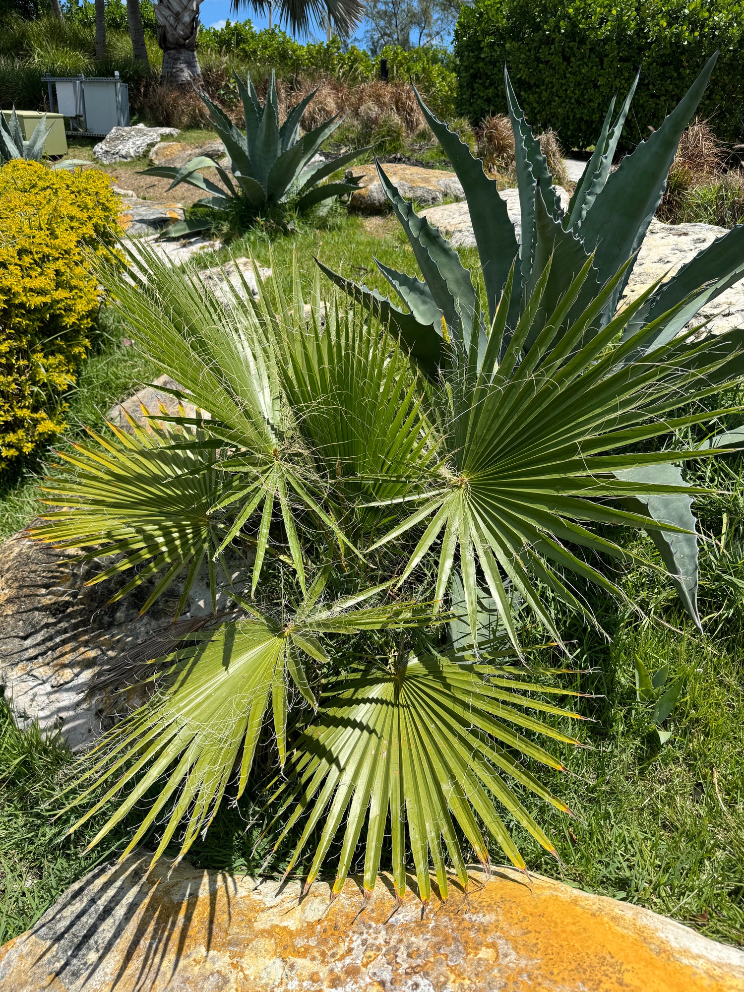 Once established, the palm is moderately salt and drought tolerant. It prefers a sunny, well drained spot, and loves a breezy location.